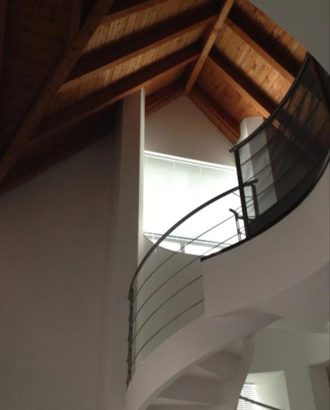 La divisione Legno di BCM srl ha fornito e realizzato la struttura di copertura in legno lamellare a vista con travi portanti a ginocchio. BCM srl ha fornito e realizzato anche il pacchetto di copertura del tipo isolante e ventilato. Struttura fornita è stata pretagliata a controllo numerico con incastri a coda di rondine. E’ stata applicata una impregnatura bianca satinata.