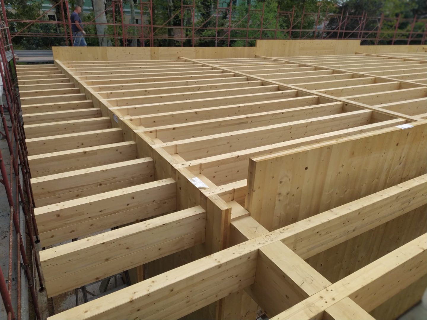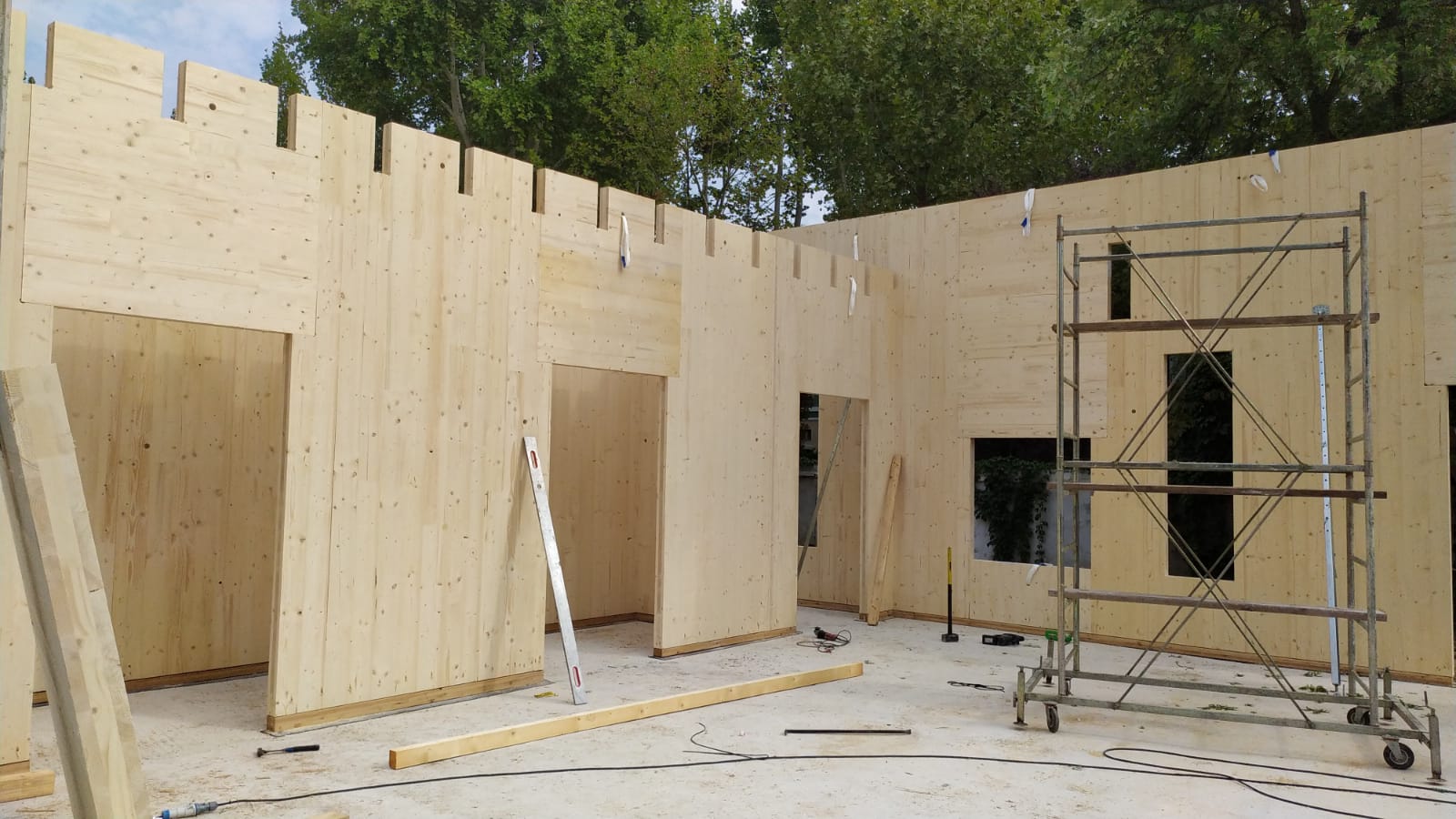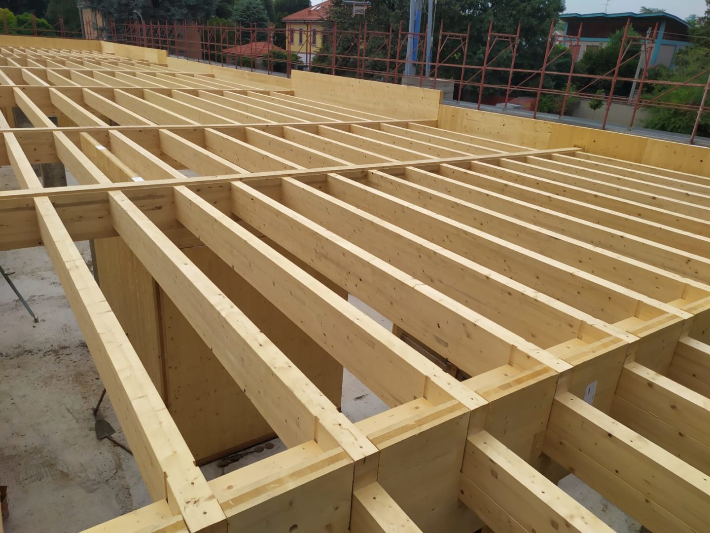 La divisione Legno di BCM srl ha fornito e realizzato le strtture relative all’ampliamento di un edificio scolastico a Cusano Milanino. L’ampliamento è stato realizzato con pareti in X-Lam a 5 strati e copertura piana in legno lamellare a vista; il p pacchetto di copertura è stato realizzato con sitema tetto-giardino. La struttura è stata fornita pretagliata a controllo numerico con incastri a coda di rondine. La struttura è stata fornita con impregnatura trasparente satinata.